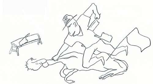 Iam antaŭe, malriĉulo vivis en granda mizero. Li laboregis por la reĝo dum longa tempo, kaj malgrasiĝis tagon post tago de la peza laboro. Vidinte tion, la reĝo kompatis lin, kaj donacis al li mortan kamelon. La malriĉulo akceptis la donacon, kaj senprokraste eksenfeligis ĝin. Lia tranĉilo malakriĝis dum la laboro, li do ekserĉis akrigilon. Finfine li trovis la akrigilon en la supra etaĝo, kaj tie akrigis la tranĉilon. Poste, li revenis malsupren por la senfeligado. Tiel li supreniradis multfoje por akrigi la tranĉilon, kaj tediĝis de tio iom post iom. Por eviti pluan supreniradon, li ŝnure tiris la kamelon sur la supran etaĝon por ĝin proksimigi al la malgranda akrigilo. Pro tio li estis mokita de aliaj.