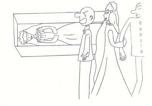 ĝis pri la kromedzo, kaj revenis al sia antaŭa hejmo. Ŝi diris al la edzo: "Mi estas via edzino." La edzo respondis: "Mia kara edzino jam forpasis. Kiu estas vi, ke vi eĉ aŭdacas pretendi vin kiel mian karulinon!" Malgraŭ la eksplikado de la edzino, la malsaĝulo neniel kredis, ke ŝi vere estas lia edzino.