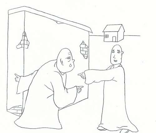Iam antaŭe, iu vizitis aliulon kaj vidis, ke liaj muroj estas bone ŝmiritaj, kaj la planko estas ankaŭ glata kaj pura. Li do demandis: "Per kio vi ŝmiris viajn murojn kaj plankon tiel okulplaĉaj?" La gastiganto respondis: "Unue, mi infuzis la rizbranon ĝisplene, kaj miksis ĝin en la ŝlimon. Poste mi ŝmiris la murojn per la ŝlimo. Do ili estas tiel okulplaĉaj." La vizitanto pensis: "Nur uzi la rizbranon estas malpli bone ol la rizgrajnon por pliglatigi kaj pliblankigi la murojn." Li do miksis rizgrajnon en la ŝlimon, kaj ŝmiris la muron. Sed tamen, la muroj des pli malglatiĝis kaj eĉ fendiĝis pro tio. Li do foruzis la rizgrajnon vane, kaj ankaŭ ne ricevis la deziratan efikon. Estus multe pli bone, se li donus rizgrajnon al malriĉuloj por havigi al si meriton.