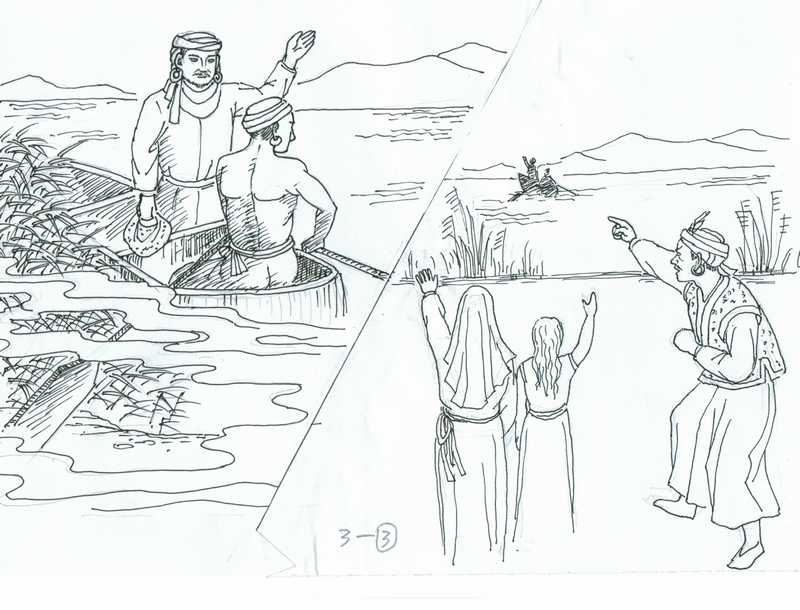 Ĉe la bordo li vidis la honestan komerciston en la boato. Li do kriis al la boatisto: "Revenu! Revenu!" Sed la honestulo ordonis la boatiston daŭrigi sian remadon al la transa bordo, kaj tiu lasta obeis.