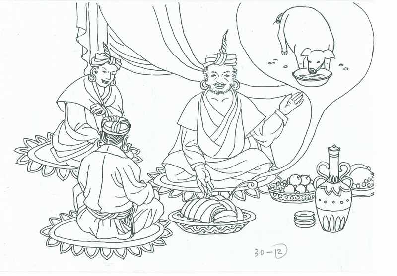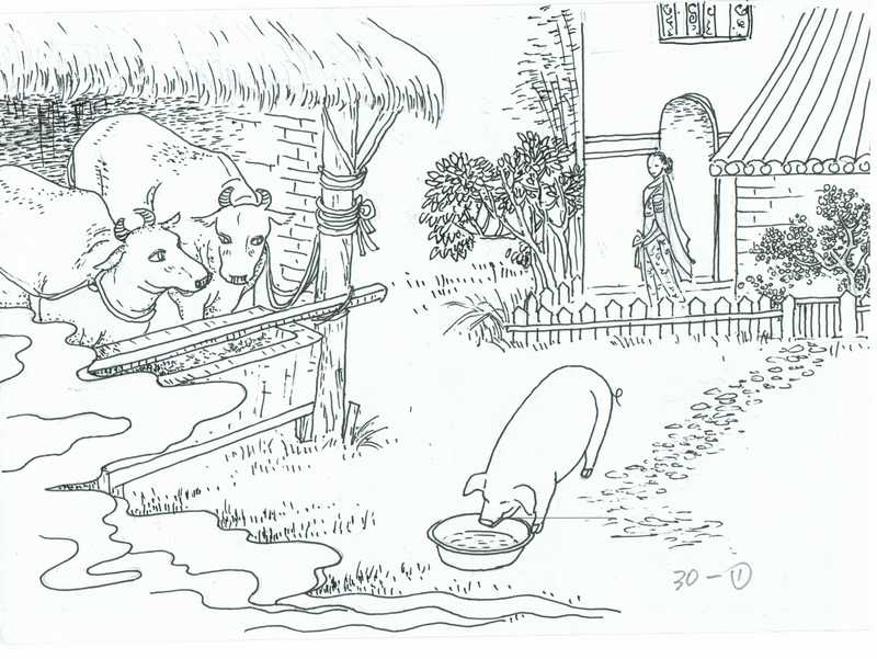 La mastroj de la familio flegis la porkidon tre bone. Ili bredis ĝin abunde per la plej bona rizo, kaj eĉ rizkaĉo kun bruna sukero.