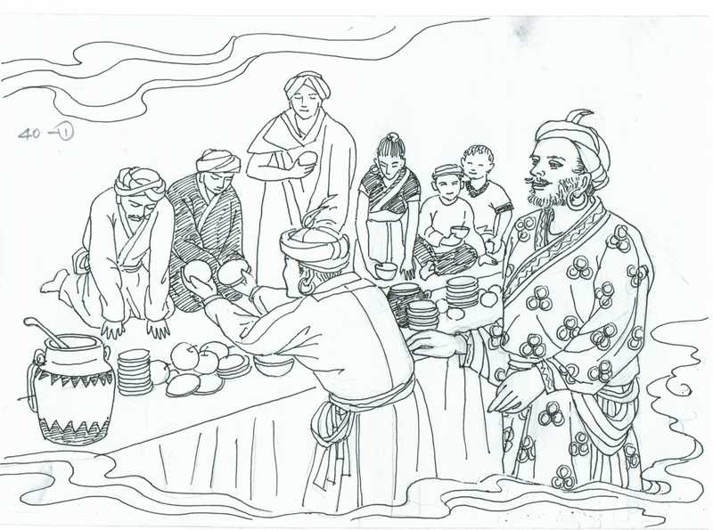 Li do konstruis manĝejojn ĉe la kvar pordoj norda, orienta, suda kaj okcidenta de la urbo. En la manĝejoj li senpage donacis manĝaĵon al ĉiuj laŭ la bezono. Li famiĝis pro sia malavareco, kaj kiel oni sciis, li kaj liaj subuloj ankaŭ estis praktikantoj de la kvin trejnaj ŝtupoj.