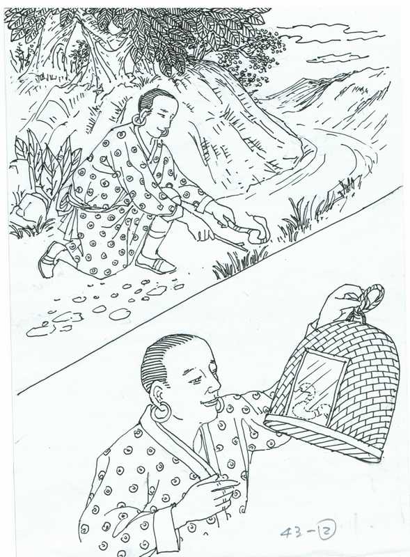 Poste, ĉiuj 500 lernantoj de la instruisto eliris por kolekti freŝajn fruktojn. La Patro de Bambuo lasis sian "filon" tenita en la bambua kaĝo.
