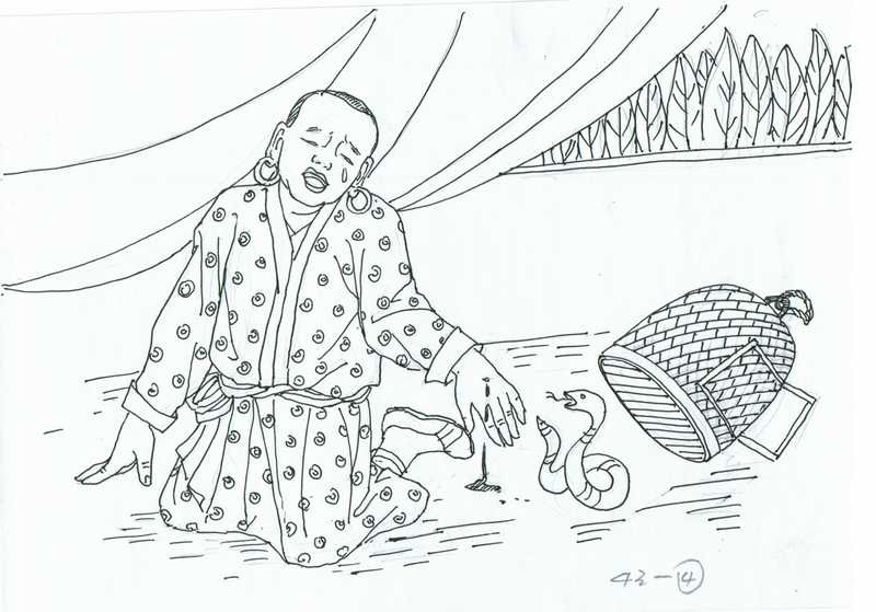 Sed kiam li etendis manon en la kaĝon, lia "filo" subite mordis lin. Ignorate dum longa tempo, Bambuo estis tiom kolera kiom malsata. Li estis nur serpento, kiu sciis neniom pri veneno.