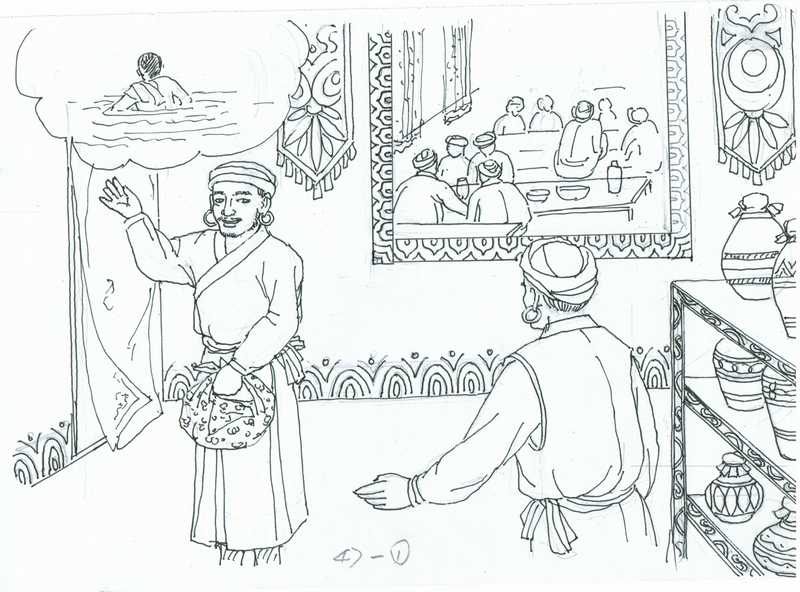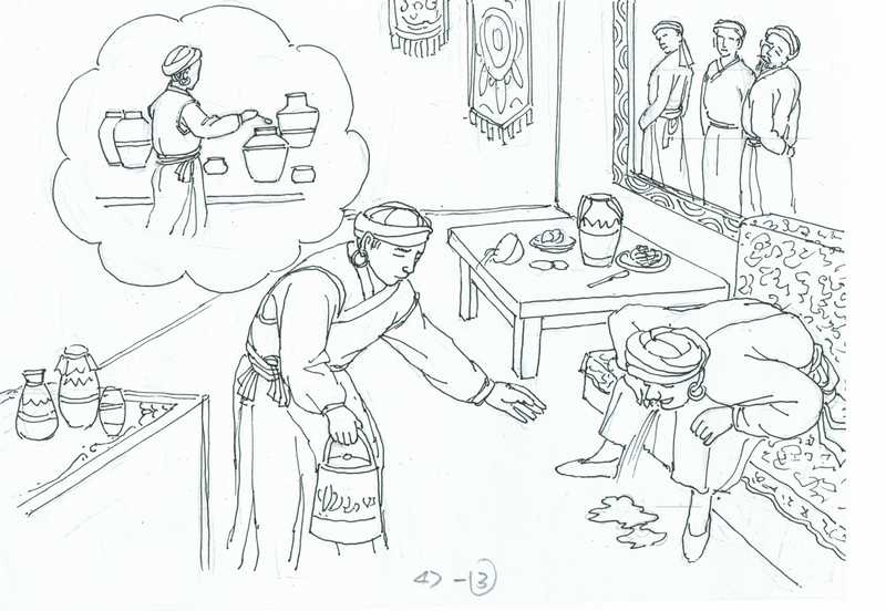 Sed ekster lia atendo, kiam la klientoj venis en la drinkejon kaj ektrinkis la salan vinon, ili tuj elsputis ĝin kaj iris al alia drinkejo.