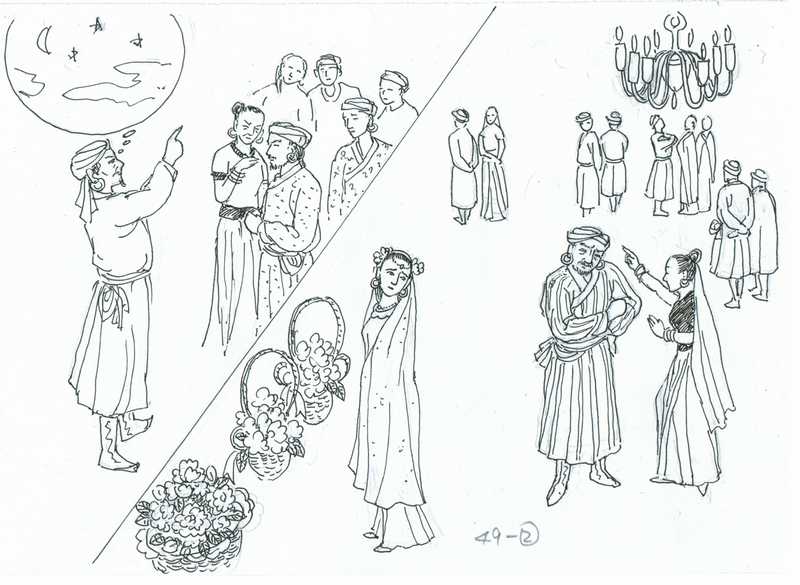 Li riverencis al ili ĉiuj, kaj serioze pririgardis sian diagramon de stelaro. Li diris al ili, ke ĉi tiu stelo estas tro proksima al la horizonto, tiu planedo estas en la mezo de la malfortuna konstelacio kaj la luno estas en danĝera fazo por geedziĝo. Li asertis, ke sen peti lian konsilon, ili elektis la plej malbonaŭguran tagon por la nupto, kio nur kondukos al fatalaĵo.