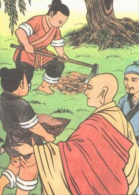 Li decidis fari ion kontraŭ tio. Sed kion fari? Bonzoj ne posedis monon. Do Majstro Saĝulo almozpetis dum pluraj jaroj, ĝis finfine li posedis sufiĉan monon por aĉeti pecon da tero kaj dungi laboristojn fosi lageton tie.