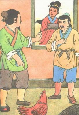 Ĝuste tiam, aŭdiĝis kokina klukado. Li konsciis, ke la kokino estas bruna. Li do tuj diris al Hoŭ la Dua: "Mi jam manĝis. Nenion preparu por mi." La edzino de Hoŭ la Dua demetis sian tranĉilon, kaj la kokino estis ŝparita. Kiam Fang revenis al Familio Hoŭ por la imposto post semajnoj, la bruna kokino atendis lin respektoplene ekster la pordo. Ĝi vicigis siajn idojn kaj ili ĝojiĝis vidinte lin.