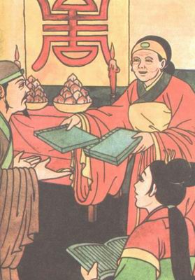 La amikoj kaj parencoj de Avino Ŝju ankaŭ alvenis celebri la feston, sed ĉinoj kutime donis nur monon anstataŭ donacon je la naskiĝtago. Avino Ŝju ricevis multe da mono por sia naskiĝtago. Ŝi alvenigis sian nepon kaj diris al li: "Elspezu la monon presi La Lotusan Sutron por ĉiuj amikoj kaj parencoj."