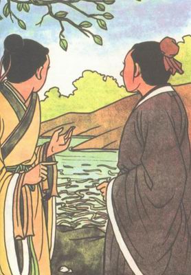 Daŝan-templo estis unu el la plej grandaj temploj en Kŭajĝji, Ĝeĝjang-provinco. Tie svarmis multaj pilgrimantoj, vojaĝantoj, kaj spektantoj de la pejzaĝo. Iun tagon al la templo venis du kleruloj Tao Ŝiljang kaj Ĝang Ĝiting. Ni jam rakontis, kiel Majstro Saĝo komencis konstruigi vivliberigan lageton en la temploj. Kompreneble, Daŝan-templo ankaŭ havis grandan vivliberigan lageton. Kiam la du kleruloj vidis, ke centoj da angiloj kaj fiŝoj naĝas feliĉe en la lageto, ili emociiĝis kaj ankaŭ volis ion fari por la fiŝoj.