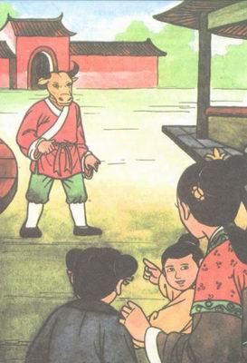 Liaj amikoj estis malĝojaj por li. Tiam ili vidis eksteratende, ke lia kapo jam aliformiĝis en tion de la bovo, kiel rimarkigo al oni pri la danĝero kaŭzita de avido kaj malico.