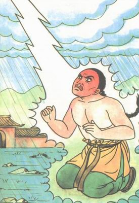 Iu el ili subite genuiĝis vekriante. Li estis trafita de tondro! Kvankam li estis ankaŭ viva, tamen li estis brulvundita tutkorpe. La odoro de rostita viando plenis en la aero. Li tordiĝis en agonio. Li tremegis tutkorpe, kaj la larmoj fluis el liaj okuloj.