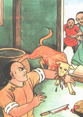 Iu buĉisto de hundoj vivis en Nanŝjang vilaĝo de Jiaŝjing-gubernio, proksima al Ŝanghai-urbo. Lia nomo estis Caj Liŭ. Hunda viando estis precipe populara en vintro, ĉar oni opiniis, ke hundaĵo varmigas onian korpon. Je la alproksimiĝo de la novjara festo, Caj ridis kiam li akrigis siajn tranĉilojn kaj pripensis, kiom li povus gajni.