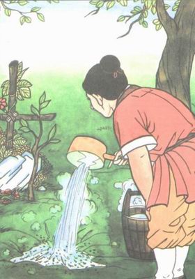 "Fraŭlino Ĝang la Dua estas taŭga por mi. Ŝi havas ĉarman vizaĝon kaj delikatajn blankajn manetojn, kiujn mi iam vidis. Se mi edziĝos al ŝi, mi povos generi grupon da infanoj. Ĉu tio ne estas feliĉa?"